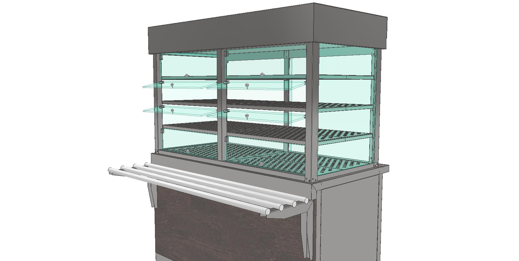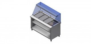 БЕЙН МАРИ – подходяща за съхранение на ястия, супи и т.н – отворен шкаф с долен плот, облечено с неръждаема стомана или ПДЧ. Подходящо за поставяне на GN – съдове.