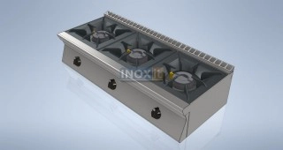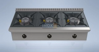 Професионален газов котлон с 3 високомощни газови горелки, разположени в един ред.