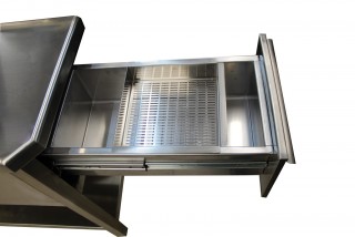 Чекмеджетата се изработват от неръждаема стомана AISI 304 и стандартно са в размер с вместимост 1бр. GN1/1 съд (530/325мм). Могат да бъдат изработени и с нестандартен размер.