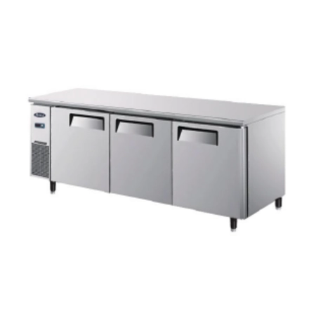 Професионална хладилна маса с 3 плътни врати и ляв комресор.